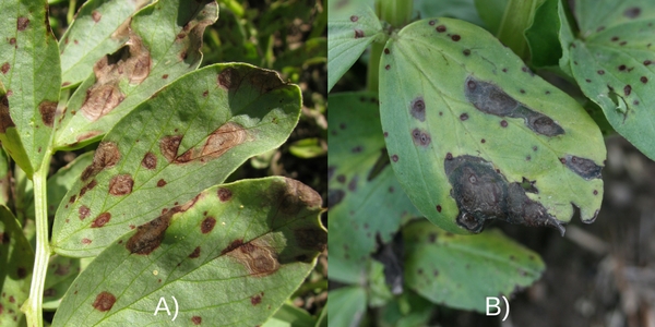 Why: All plants are susceptible to fungal disease but some plants such Chickpeas, Faba Beans, Barley and Canola are more likely to be affected than others, this is particularly true in periods of extended wet weather. There are many types of fungal disease that affect different areas of plant and cause different symptoms but they all affect the plant in one of two ways. Diseases that attack the roots of plants can cause parts of root to die off limiting the ability of the plant to take up water and nutrients, while diseases that attack the leaves of the plants cause parts of the leaf to die restricting the plants ability to make energy through photosynthesis as well as limiting the transport of energy and nutrients through the plant. This all reduces yield potential.